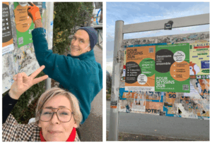 - Les affiches du projet de liste citoyenne sont collées sur les panneaux d’expression libre (nous veillons à préserver des espaces sur les panneaux pour que d’autres affiches puissent être apposées 😉)