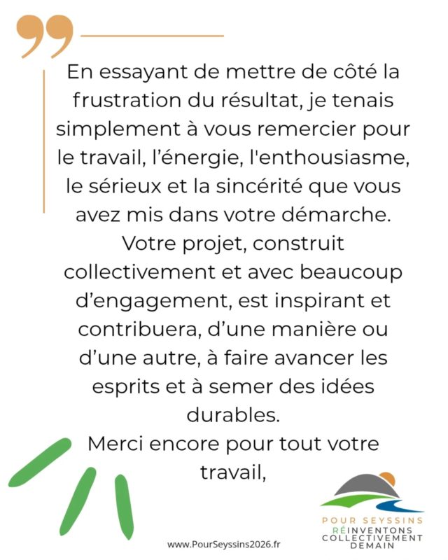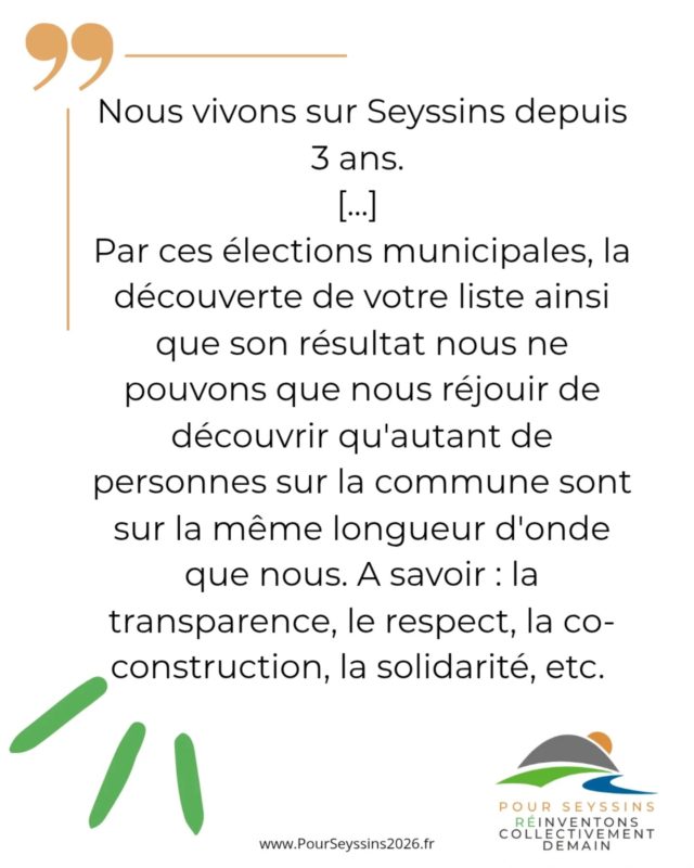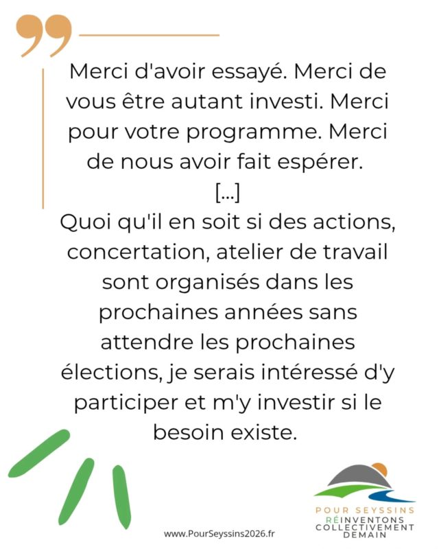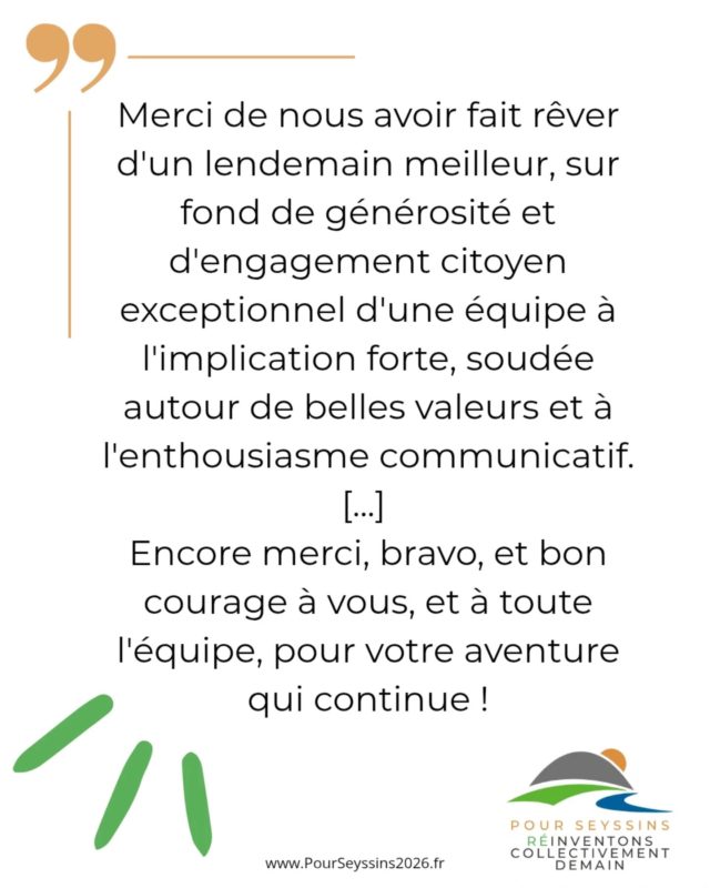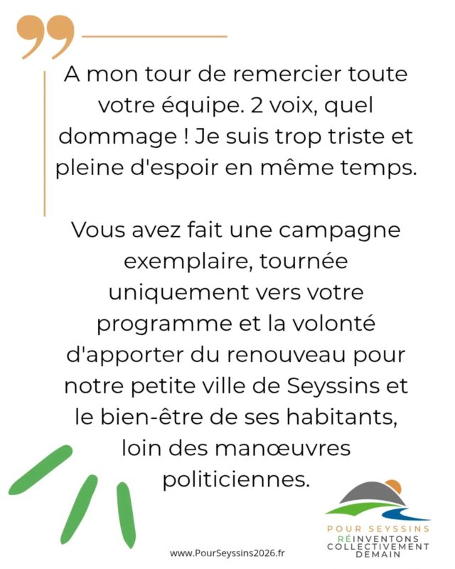 Si vous aussi vous souhaitez nous apporter votre témoignage, votre ressenti sur l’élection ou participer à la suite de notre aventure, n’hésitez pas à laisser un commentaire ici ou à nous envoyer un mail sur contact@pourseyssins2026.fr